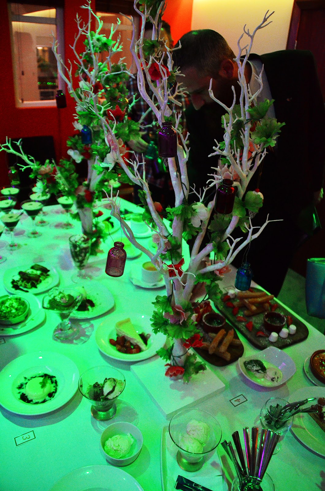 We were escorted inside to a green lit room and a table full of surprises where we were handed numbers for our desserts. I got an assortment of sweet treats done in an afternoon tea style across a platter, but after we all got a look at each others started sharing so I was stuffed gladly with churros and cream cakes. Word got out Espresso Martinis were being served to which I was eager of them all. I mean coffee and a martini in one? After all my food I needed something to perk me up and cleanse the palette.