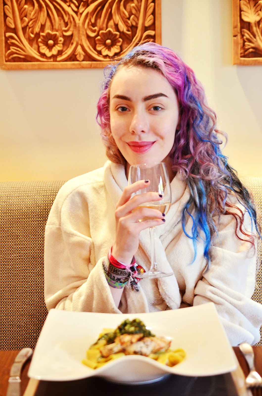 We were treated to a two course meal and enjoyed strolling around a lush restaurant in a bathrobe. An experience I really want everyone to experience.