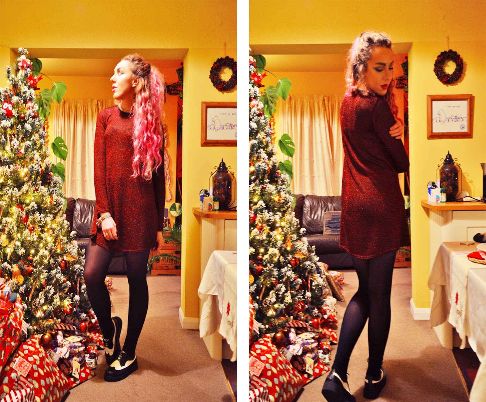 This year I’ve been quite excited to go home for Christmas Eve, I’ve barely had a chance to see my family and words cannot describe how lovely its felt to chill in the best company in the world! This look reminds me of The Grinch, I love my striped scarf and the more I look online, the more people I see with one, and for only £10 this has been my bargain buy this year! My tinsel dress is definitely very festive, I matched half the house and love something with a little hang after all the mince pies I’ve been chomping on, I hope you’ve all had a wonderful christmas so far, be sure to let me know how you’ve spent yours, as soon enough I’ll reveal mine!