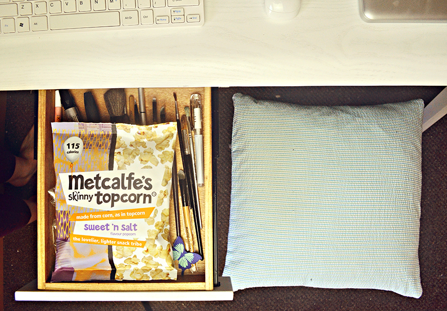 I was lurking through Ikea’s catalogue and wanted to get myself a new desk intentionally I set out to get a simple desk with a drawer, standard but when I saw this lovely Cornell desk from Made.com I knew it had to be mine, I’ve realised I don’t do well with storage and only like having a small drawer to throw away some pens and a little snack, a personal fave being Metcalfes Skinny Topcorn! The quality of the desk is strong and sturdy and is larger than I expected it to be which is an absolute bonus!